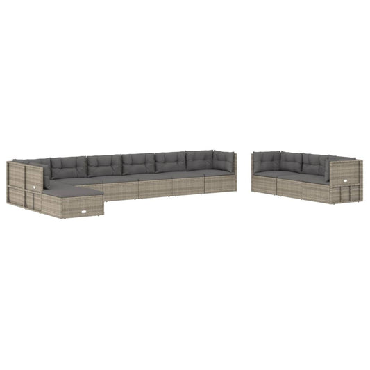 vidaXL 11 Piece Patio Lounge Set with Cushions Gray Poly Rattan