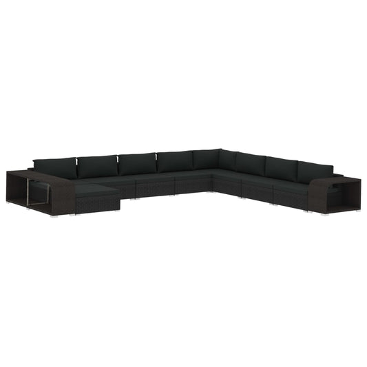 vidaXL 10 Piece Patio Lounge Set with Cushions Poly Rattan Black