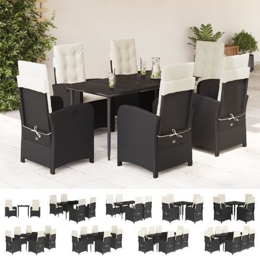 vidaXL 9 Piece Patio Dining Set with Cushions Black Poly Rattan