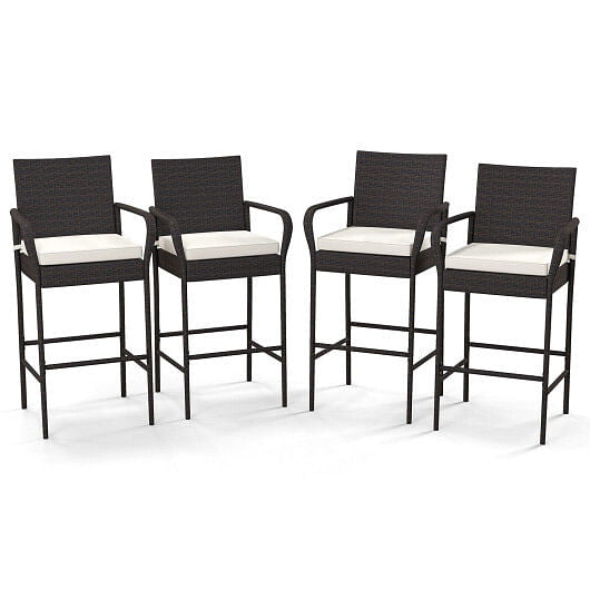 2/4 Pieces Outdoor PE Rattan Cushioned Barstool Set with Armrests-Set of 4