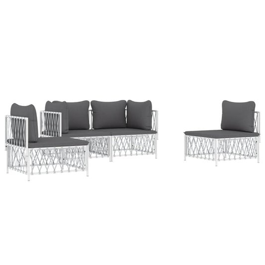 vidaXL 4 Piece Patio Lounge Set with Cushions White Steel