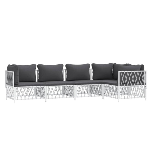 vidaXL 5 Piece Patio Lounge Set with Cushions White Steel