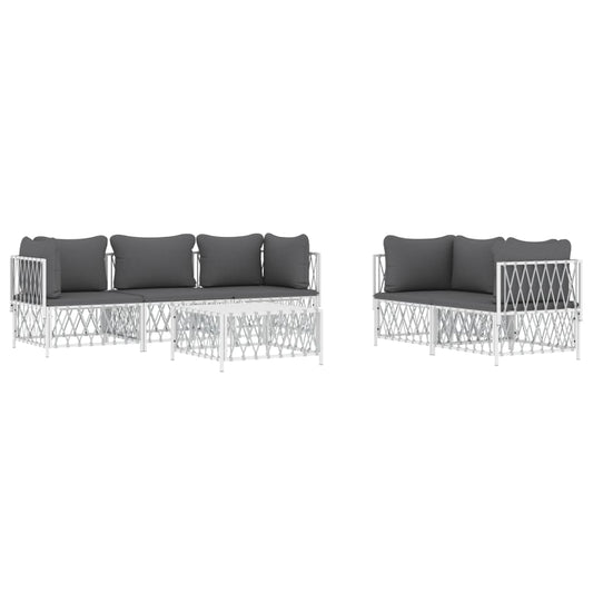 vidaXL 6 Piece Patio Lounge Set with Cushions White Steel