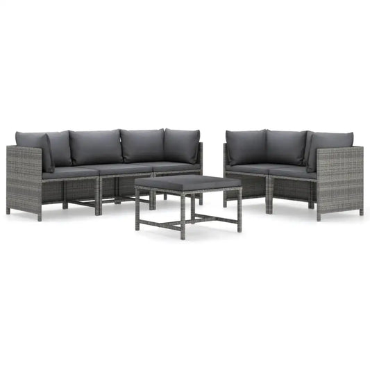 vidaXL 6 Piece Patio Lounge Set with Cushions Poly Rattan Gray
