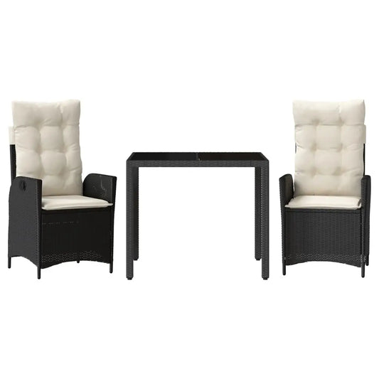 vidaXL 3 Piece Patio Dining Set with Cushions Black Poly Rattan