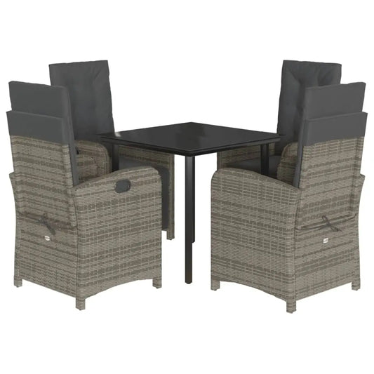 vidaXL 5 Piece Patio Dining Set with Cushions Gray Poly Rattan