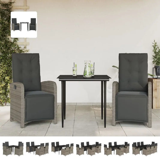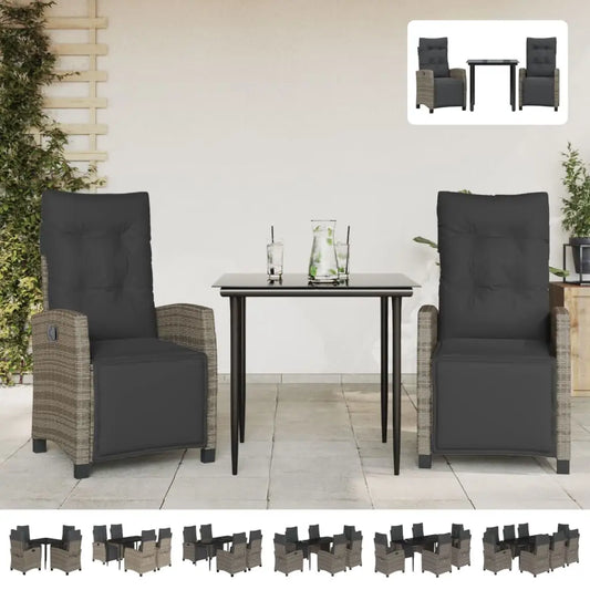 vidaXL 2 Piece Patio Dining Set with Cushions Gray Poly Rattan