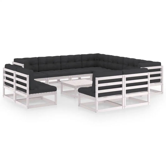 vidaXL 12 Piece Patio Lounge Set with Cushions White Solid Wood Pine