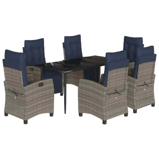 vidaXL 7 Piece Patio Dining Set with Cushions Gray Poly Rattan