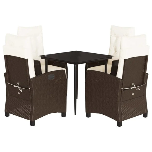 vidaXL 5 Piece Patio Dining Set with Cushions Brown Poly Rattan