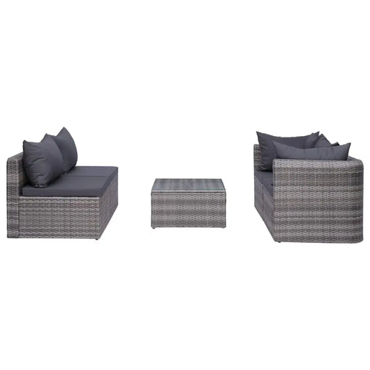 vidaXL 3 Piece Patio Lounge Set with Cushions Gray Poly Rattan