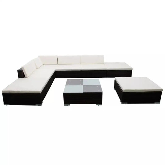 vidaXL 7 Piece Patio Lounge Set with Cushions Black Poly Rattan