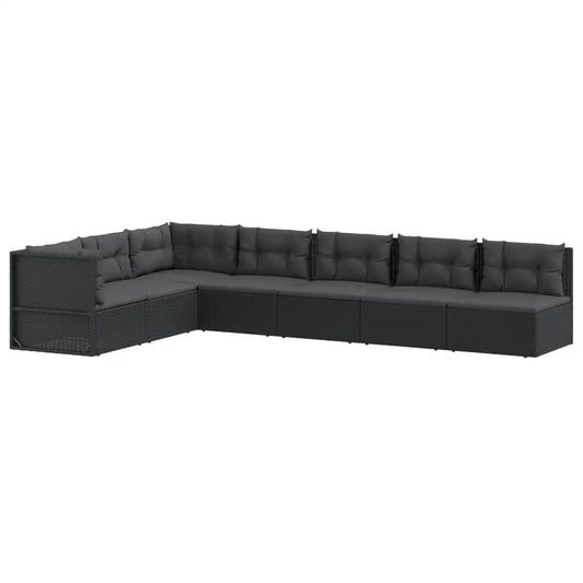 vidaXL 7 Piece Patio Lounge Set with Cushions Poly Rattan Black
