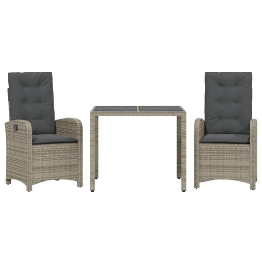 vidaXL 3 Piece Patio Dining Set with Cushions Gray Poly Rattan