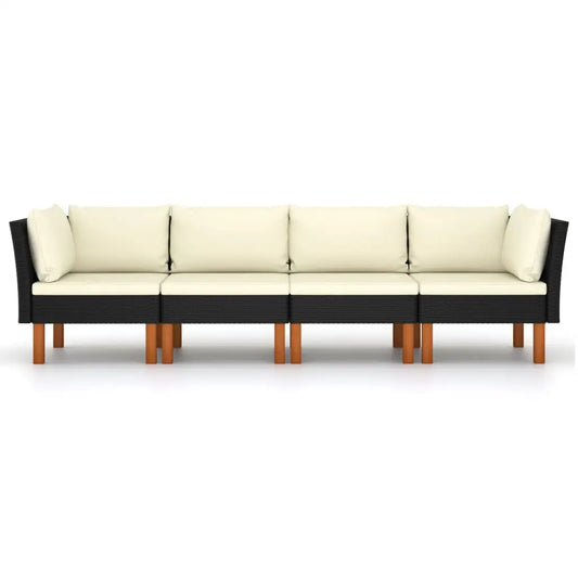 vidaXL 4 Piece Patio Sofa Set with Cushions Black Poly Rattan