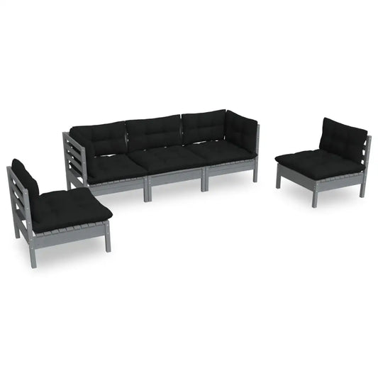 vidaXL Solid Pinewood Patio Lounge Set 5 Piece with Cushions Multi Colors