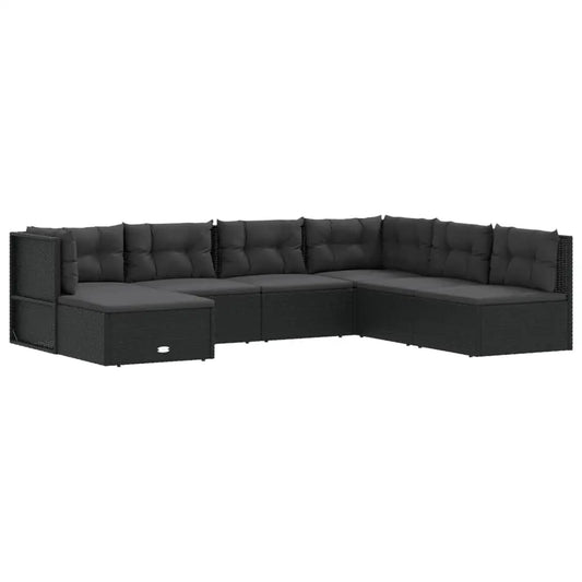 vidaXL 7 Piece Patio Sofa Set with Cushions Black Poly Rattan