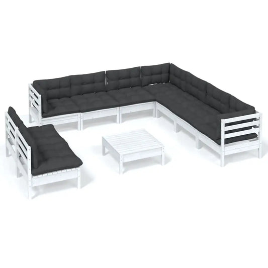 vidaXL Solid Pinewood Patio Lounge Set 10 Piece with Cushions Multi Colors