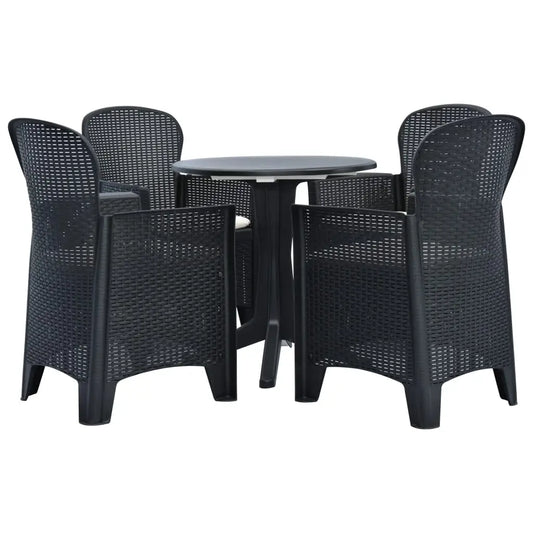vidaXL Patio Bistro Set Table and Chairs Dining Set Plastic Rattan Anthracite