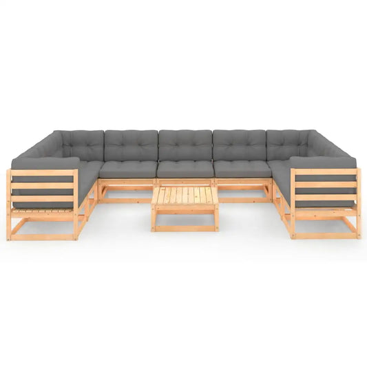 vidaXL 11 Piece Patio Lounge Set with Cushions Solid Wood Pine