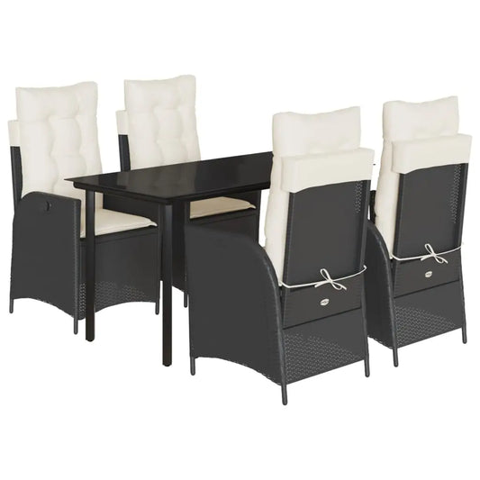 vidaXL 5 Piece Patio Dining Set with Cushions Black Poly Rattan