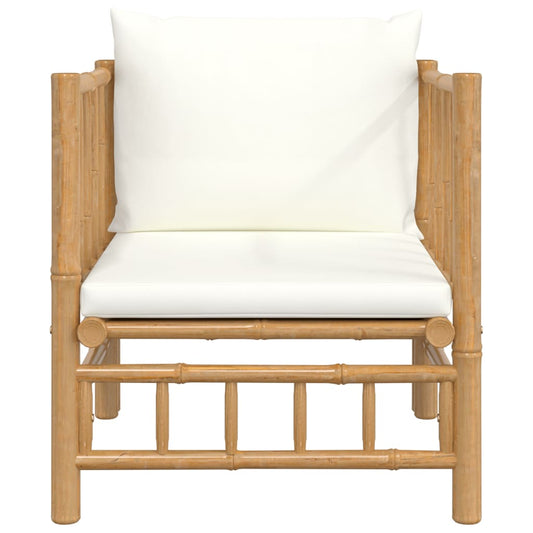 vidaXL Patio Sofa with Cream White Cushions Bamboo