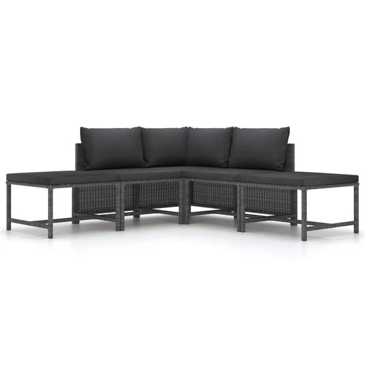 vidaXL 5 Piece Patio Sofa Set with Cushions Gray Poly Rattan
