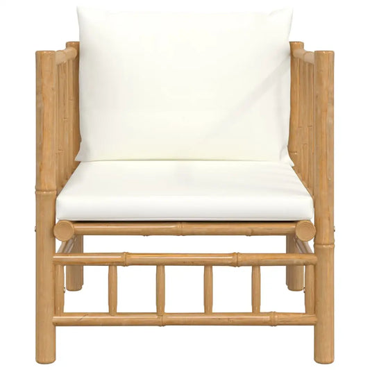 vidaXL Patio Sofa with Cream White Cushions Bamboo