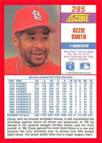 1990 Score #285 Ozzie Smith EX/NM Cardinals ID:24741