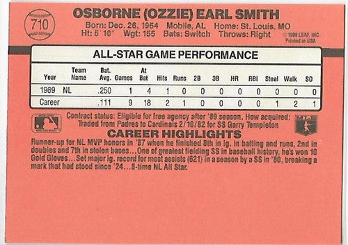 1990 Donruss #710b Ozzie Smith NM-MT Cardinals AS ID:25483