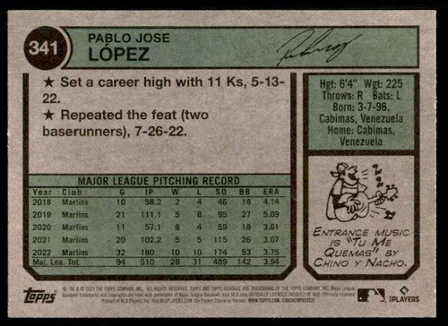 2023 Topps Heritage #341 Pablo Lopez NM-MT Marlins ID:73420