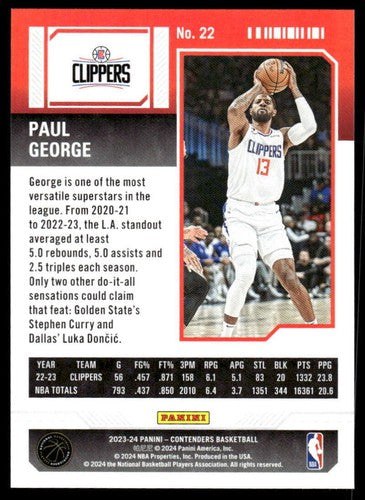 2023-24 Panini Contenders Season Ticket Retail #22 Paul George NM-MT Cl ID:74199