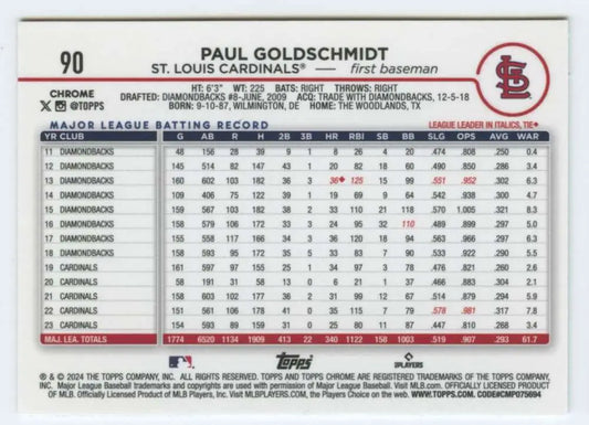 2024 Topps Chrome #90 Paul Goldschmidt NM-MT St Louis Cardinals Baseball Card