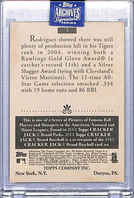 2020 Topps Archives Signature Cracker Jack #7 Ivan Rodriguez NM-MT Auto 1/1 Detroit Tigers