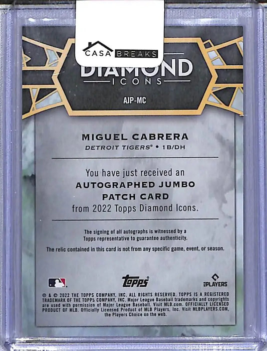 2022 Topps Diamond Icons Jumbo Patch #AJP-MC Miguel Cabrera EX Excellent MEM Auto 23/25 Detroit Tigers