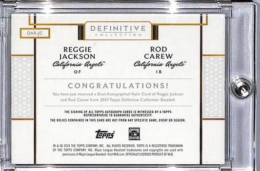 2024 Topps Definitive #DARJC Reggie Jackson/Rod Carew NM-MT MEM Auto 17/35 California Angels Baseball Card