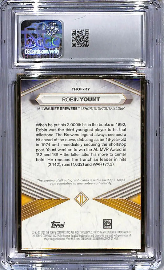 2020 Topps Transcendent HOF #THOFRY Robin Yount CGC 10 Auto 11/20 Milwaukee Brewers Baseball Card