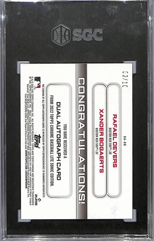 2022 Topps Chrome Sonic Refractor Black/White RayWave #DA-DB Xander Bogaerts/Rafael Devers SGC 10 Gem Auto 2/10