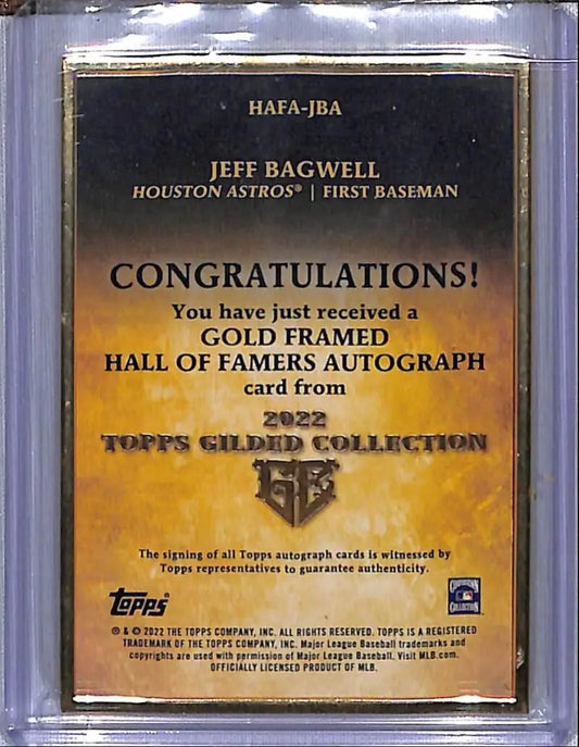 2022 Topps Gilded Collection Gold Framed Hall of Famer Emerald #HAFA-JBA Jeff Bagwell EX Excellent Auto 10/25 Houston Astros