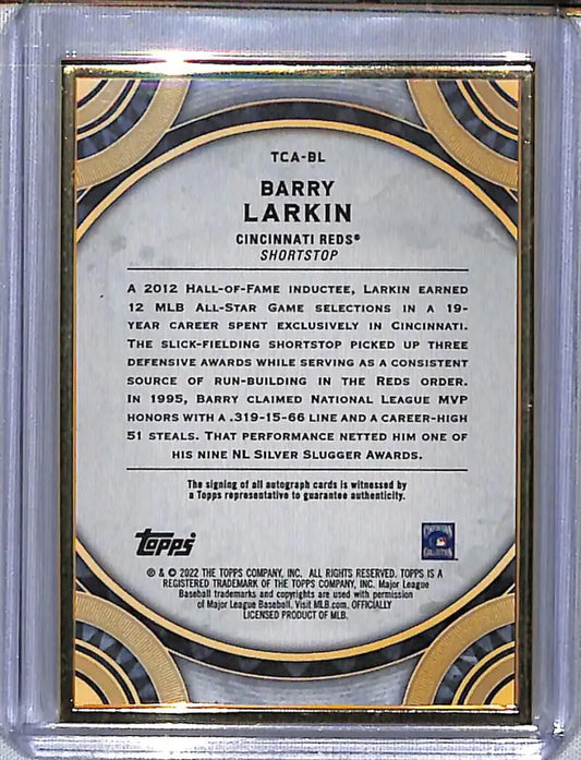 2022 Topps Transcendent Emerald # Barry Larkin EX Excellent Auto 10/15 Cincinnati Reds Baseball Card