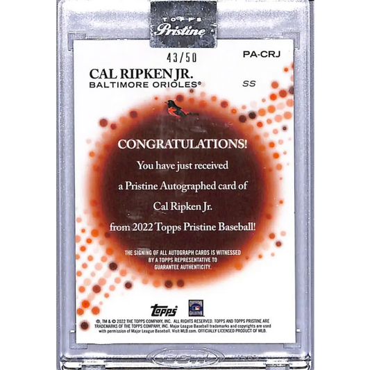 2022 Topps Pristine Refractor Gold Error Cal Ripken Jr. NM-MT Auto 43/50 Baltimore Orioles Baseball Card