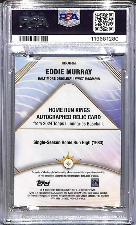 2024 Topps Luminaries Home Run Kings Blue #HRKAR-EM Eddie Murray PSA 9 MINT MEM Auto 9/10 Baltimore Orioles