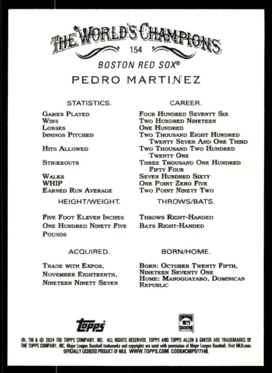 2024 Allen & Ginter #154 Pedro Martinez NM-MT Boston Red Sox Baseball Card