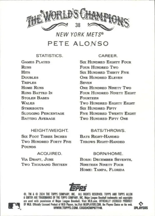 2024 Topps #38 Pete Alonso NM-MT New York Mets Baseball Card