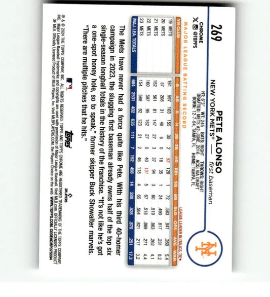 2024 Topps Chrome Refractor #269 Pete Alonso NM-MT New York Mets Baseball Card
