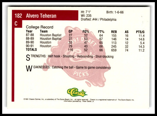 1991 Classic Multi-Sport Four Sport Alvaro Teheran #182 Philadelphia 76ers