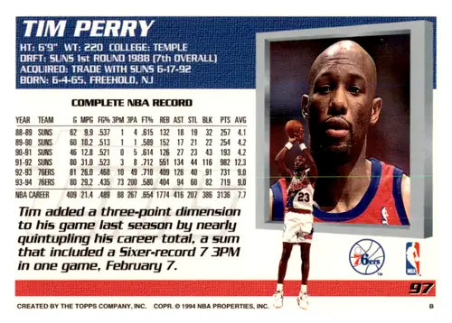 1994-95 Topps #97 Tim Perry NM Near Mint 76ers ID:45164