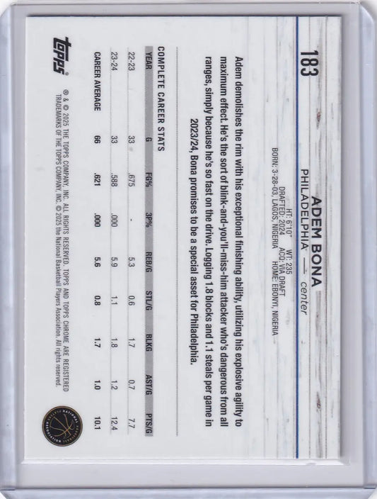 2024-25 Topps Chrome Magenta Refractor #183 Adem Bona - Philadelphia 76ers
