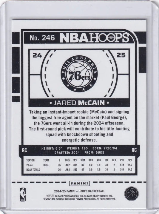 2024 HOOPS #246 JARED MCCAIN- PHILADELPHIA 76ERS