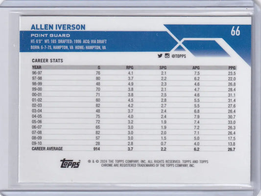 2024 TOPPS #66 ALLEN IVERSON HOLO- PHILADELPHIA 76ERS